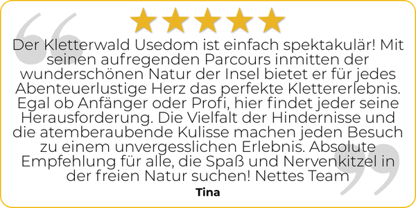 Egal, ob du mit deiner Familie unterwegs bist, zum ersten Mal kletterst oder gezielt den Nervenkitzel suchst: Im Kletterwald Usedom findest du genau die Mischung aus Spaß, Bewegung und Herausforderung, die deinen Besuch zu einem echten Highlight macht.