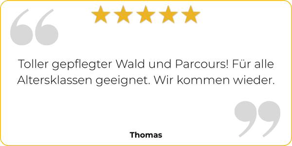 Alle Parcours sind harmonisch in den Wald integriert und bieten dir ein intensives Naturerlebnis. Je nach Strecke erwarten dich zwischen 10 und über 20 Elemente, die Balance, Geschick, Mut und Ausdauer fordern. So wird jeder Parcours zu einem eigenen Abenteuer – abwechslungsreich, fordernd und garantiert nicht langweilig.