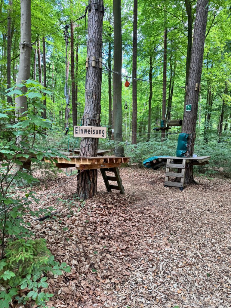 Mit 10 abwechslungsreichen Elementen bietet der Spielparcours genau die richtige Mischung aus Spaß, Bewegung und Sicherheit – ideal für den Einstieg in den Kletterwald.